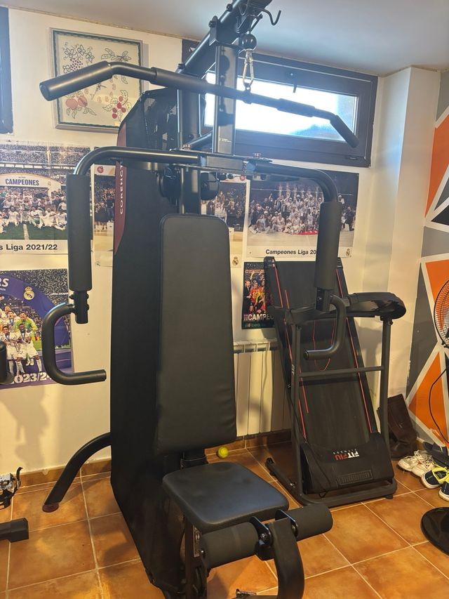 Detalles del productoMáquina de gimnasio multifuncional para entrenar en casa. Ideal para trabajar diferentes grupos musculares.