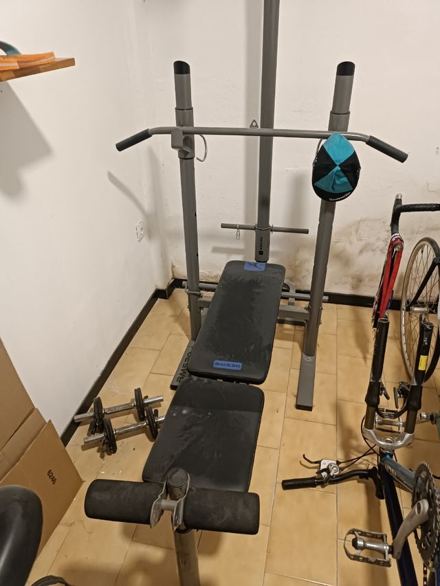 Banco de musculación, está en buen estado, tengo bastantes discos mas barras....se entrega en Badalona
