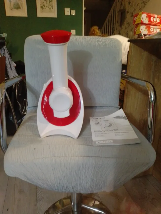 Detalles del productoMáquina para preparar helados y sorbetes caseros de forma rápida y sencilla. Su diseño blanco y rojo le da un toque moderno.