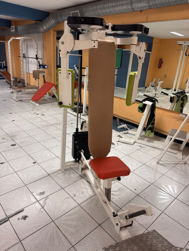 Máquina de gimnasio Adam Fitness para trabajar el pectoral. Ideal para entrenamientos. - Tapicería en color rojo. - Peso incluido.