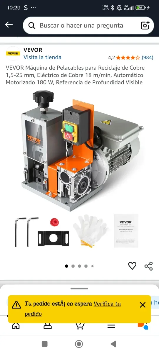 Detalles del productoMáquina pelacables VEVOR, modelo eléctrico para reciclaje de cobre. Se ha utilizado una sola vez.