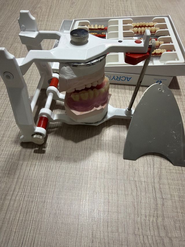 Equipo para la elaboración de prótesis dentales. - Articulador dental. - Soporte para modelos de yeso. - Caja de dientes acrílicos de repuesto.