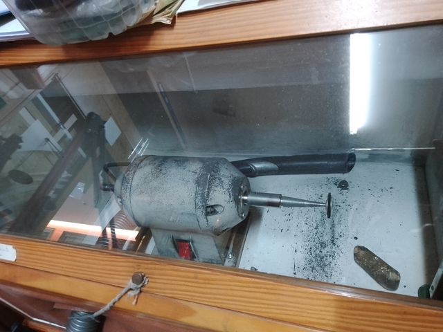 Detalles del productoMaquina pulidora joyería+ mueble madera con tapa y cristal ( para proteger y que no salga el polvillo) con luz, en perfecto estado, salvo que el interruptor del motor está partido ( aunque funciona perfectamente), y habría que poner uno nuevo, para más comodidad.