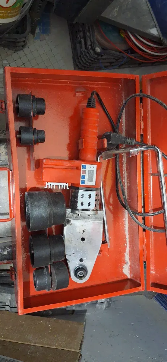 Detalles del productoMáquina para soldar tubos de polipropileno (PPR). Incluye varios accesorios para diferentes diámetros.