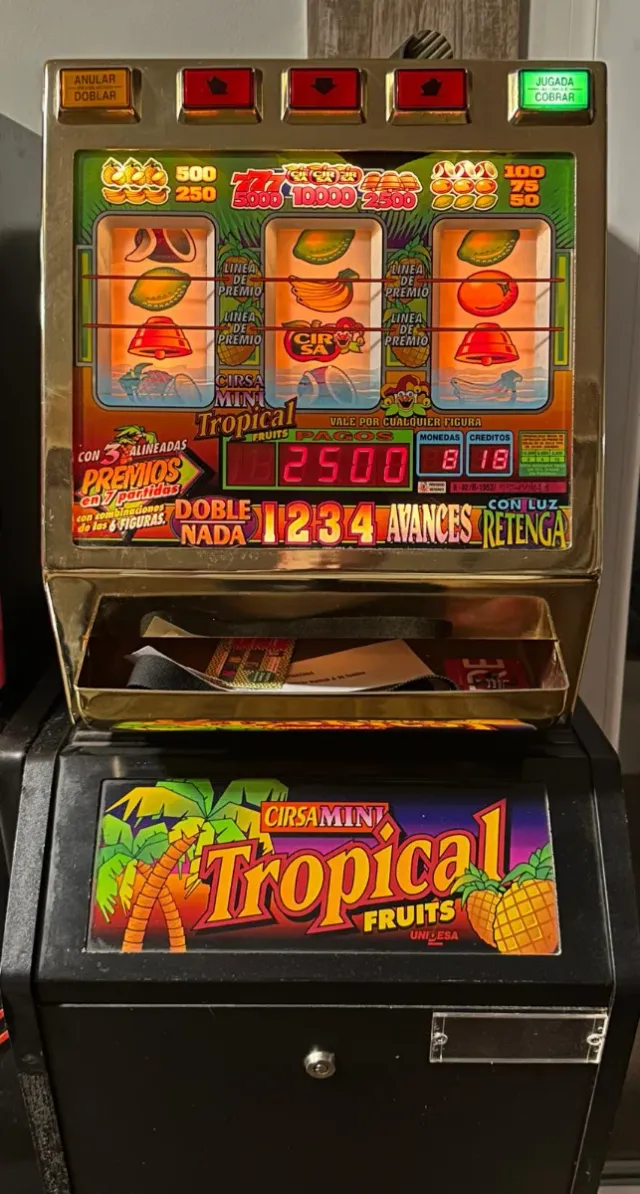 Detalles del productoMáquina tragaperras CIRSA MINI TROPICAL. PARA USO PARTICULAR.