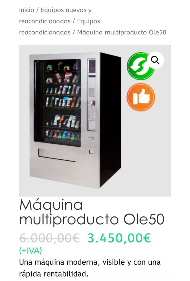 Máquina multiproducto Ole50.Está en buen estado y es moderna. Incluye monedero y billetero. Actualmente está trabajando. Sensor de caída anulado.