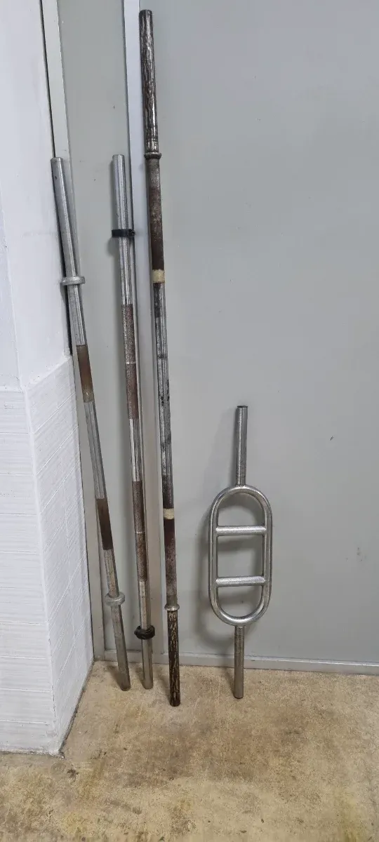 Conjunto de equipamiento para entrenamiento de fuerza. - Barra recta. - Barra Z. - Barra hexagonal. - Barra recta con mangos.