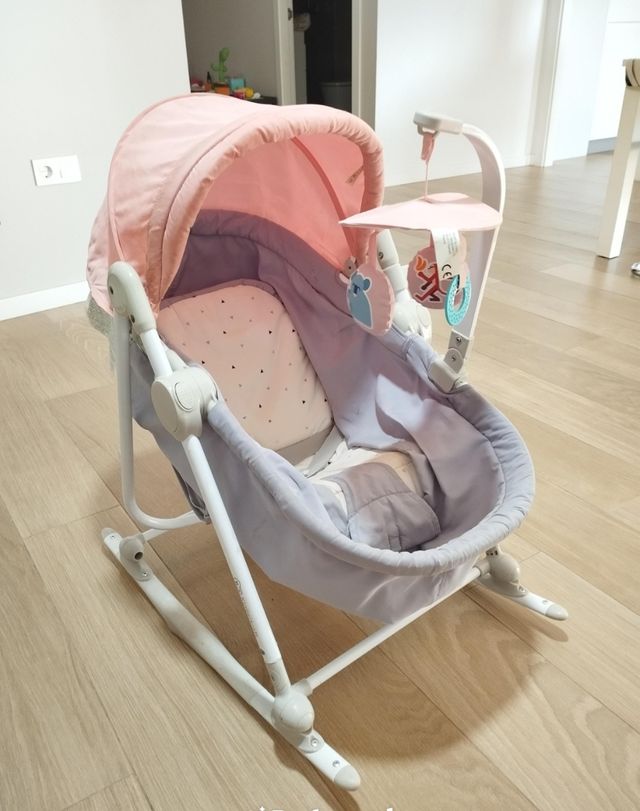 Maquita bebe en muy buen estado,5 en 1 en posiciones,tanto puedes usarlos como cuna,como de balancin y inclinarlo para mas mayor. Se pliega y facil de llevar a cualquier sitio.