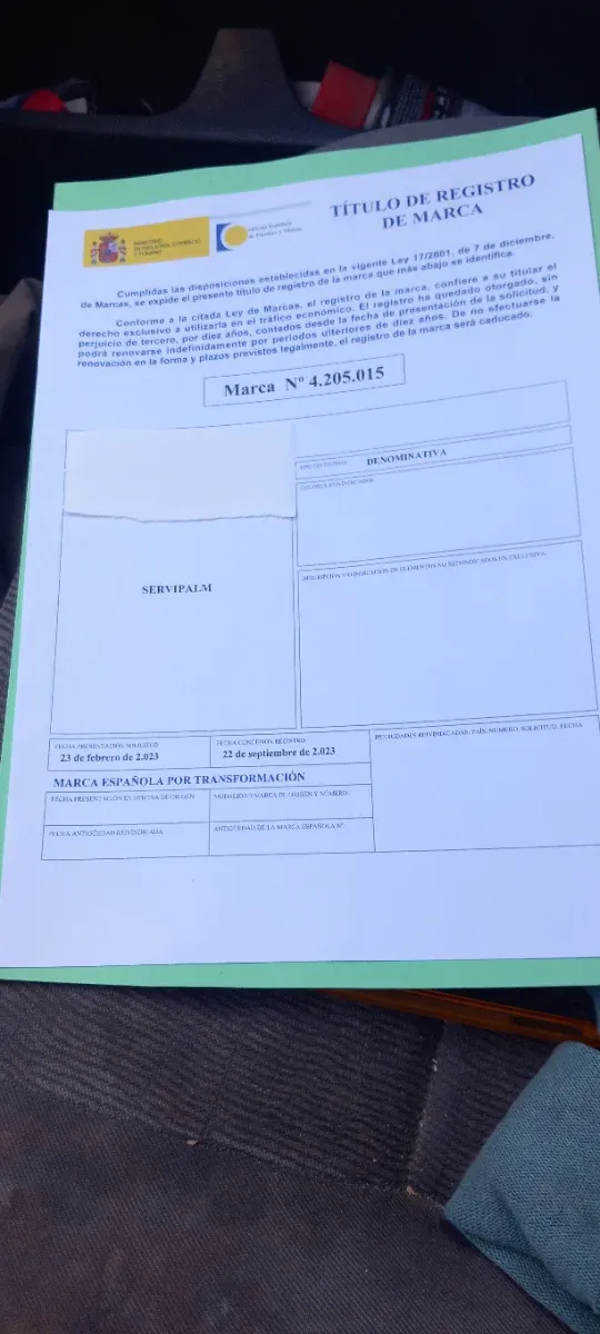 Marca comercial registrada SERVIPALM
