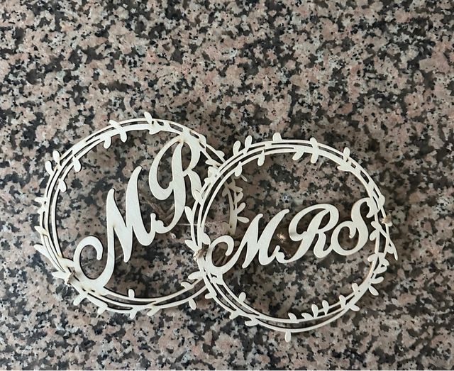 marcasitios para las sillas de novios.. tienen cuerda para colgar detras y son de madera. precio por las 2
