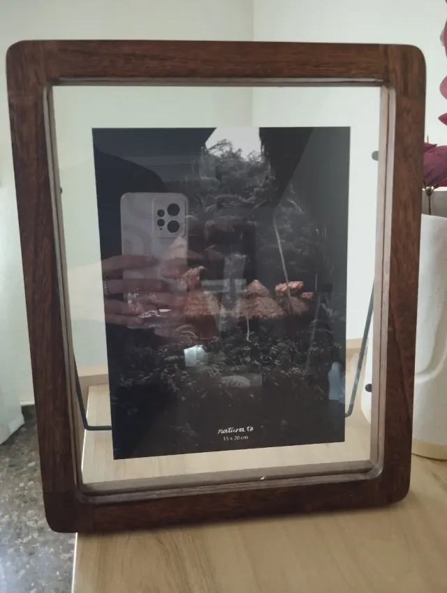 Marco de fotos con un diseño elegante y moderno, ideal para exhibir tus recuerdos. - Material: Madera. - Color: Marrón oscuro. - Tamaño de foto: 15 x 20 cm.