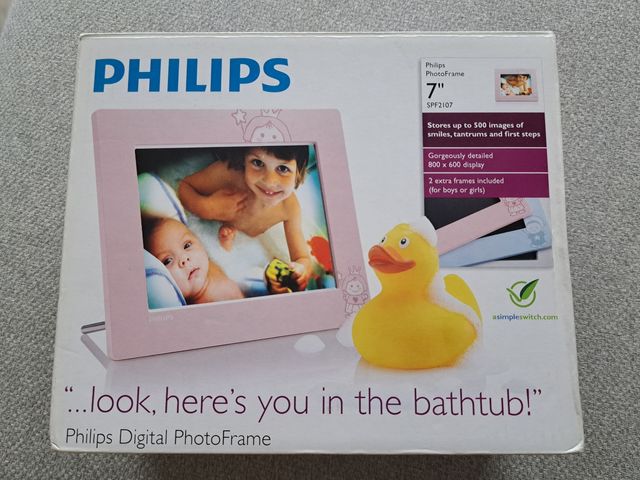 Marco de fotos digital Philips modelo Digital PhotoFrame SPF2107/10 completamente nuevo, sin estrenar! Ideal para regalar a un recién nacido y guardar sus primeras memorias de una manera moderna y elegante. Características principales: