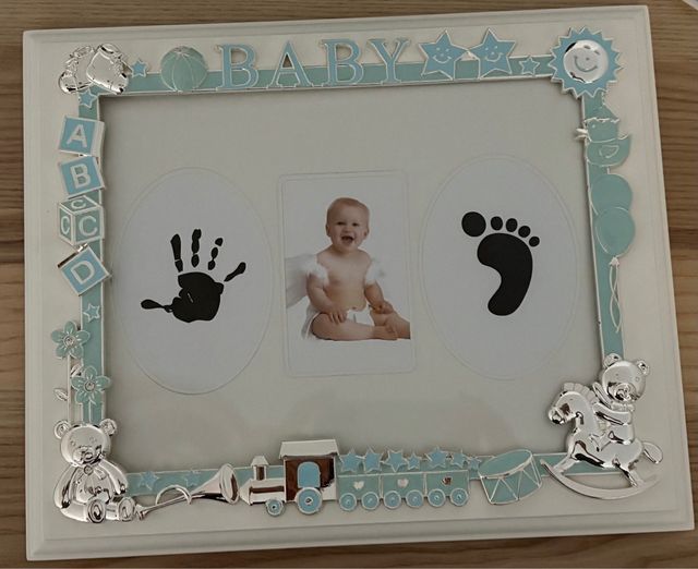 Detalles del productoMarco de joyería para recuerdo de foto de un bebé, huella de mano y huella de pie.