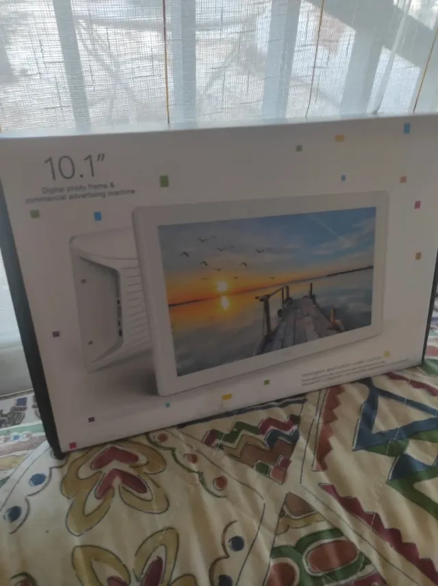 Marco digital de 10.1 pulgadas, también funciona como máquina publicitaria. - Pantalla de 10.1 pulgadas. - Diseño moderno y elegante.