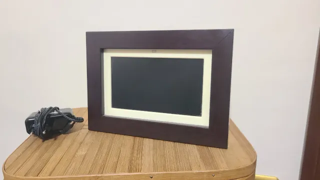 Marco de fotos digital de la marca Coby. Ideal para exhibir tus recuerdos favoritos.
