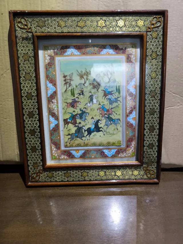Detalles del productoMarco antiguo de estilo persa con intrincada marquetería Khatam Kari. Una pieza decorativa única.