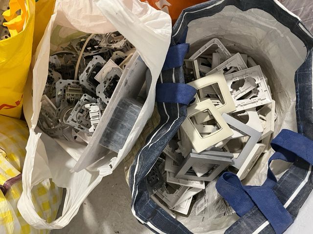 Detalles del productoLote de marcos y mecanismos para interruptores y enchufes.