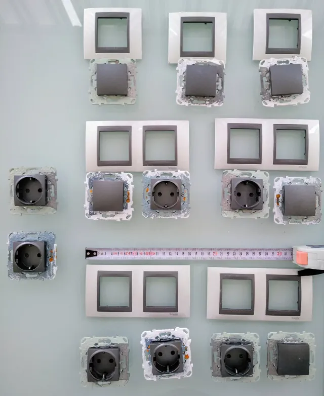 Detalles del productoLote de mecanismos eléctricos Schneider en acabado nácar. Incluye marcos, interruptores y enchufes.