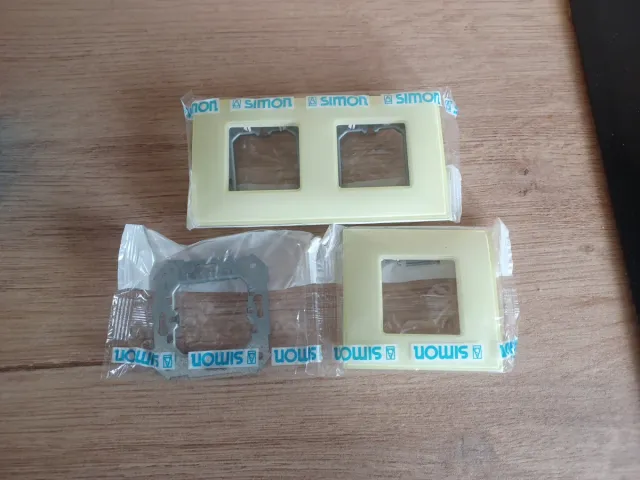 Se venden marcos de la marca Simon para enchufes. Son de color crema y vienen en su embalaje original. - Marcos de 2 módulos. - Marcos de 1 módulo.
