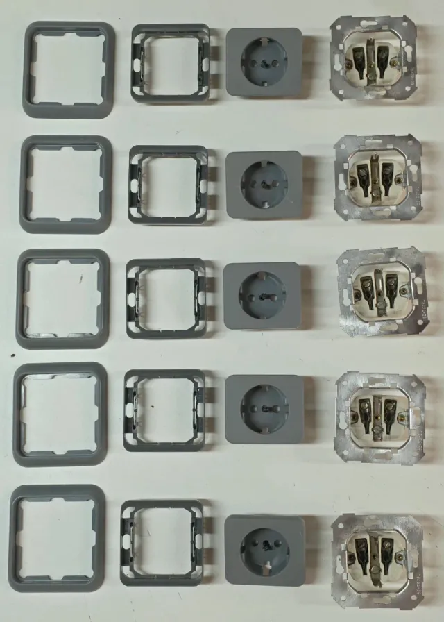 Detalles del productoLote de marcos y mecanismos de la serie Simón 75. Piezas de recambio o para completar instalaciones.
