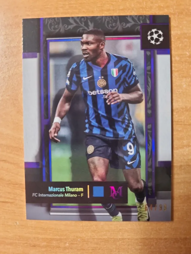 Tarjeta de colección de Marcus Thuram de Topps Museum. - Edición limitada. - Número de serie: 64 de 99. - Jugador: Marcus Thuram. - Equipo: FC Internazionale Milano.