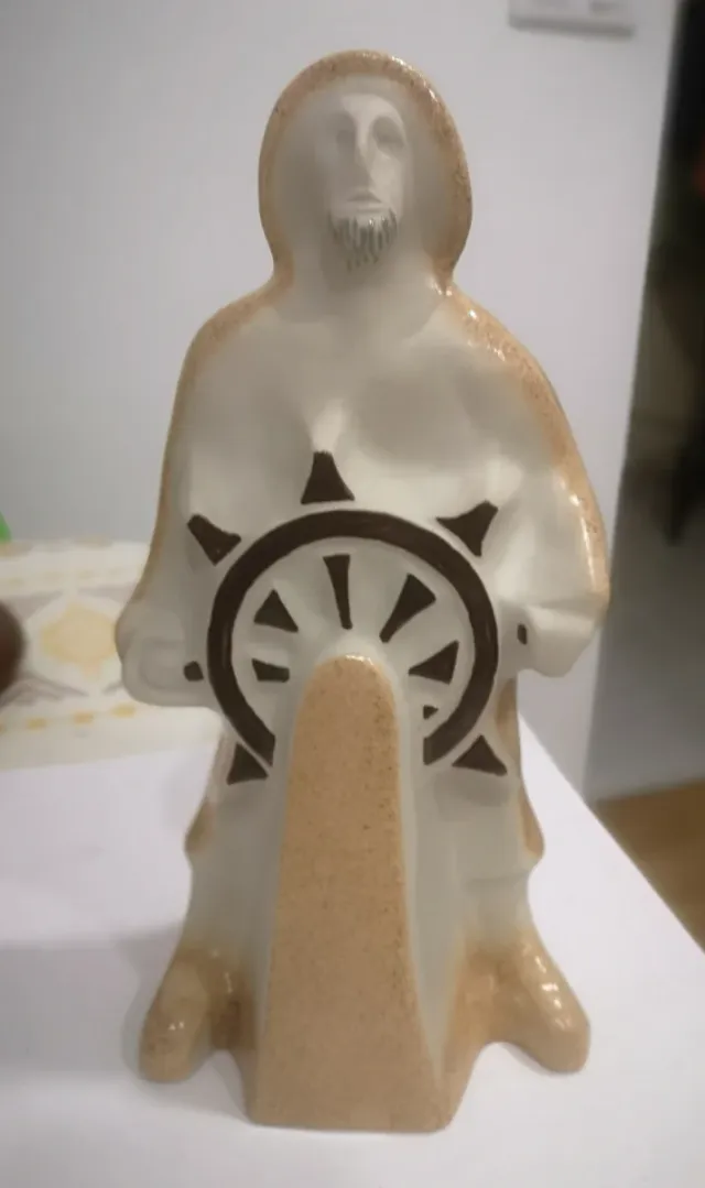 Figura decorativa de un marinero timonel. - Diseño detallado. - Base estable.