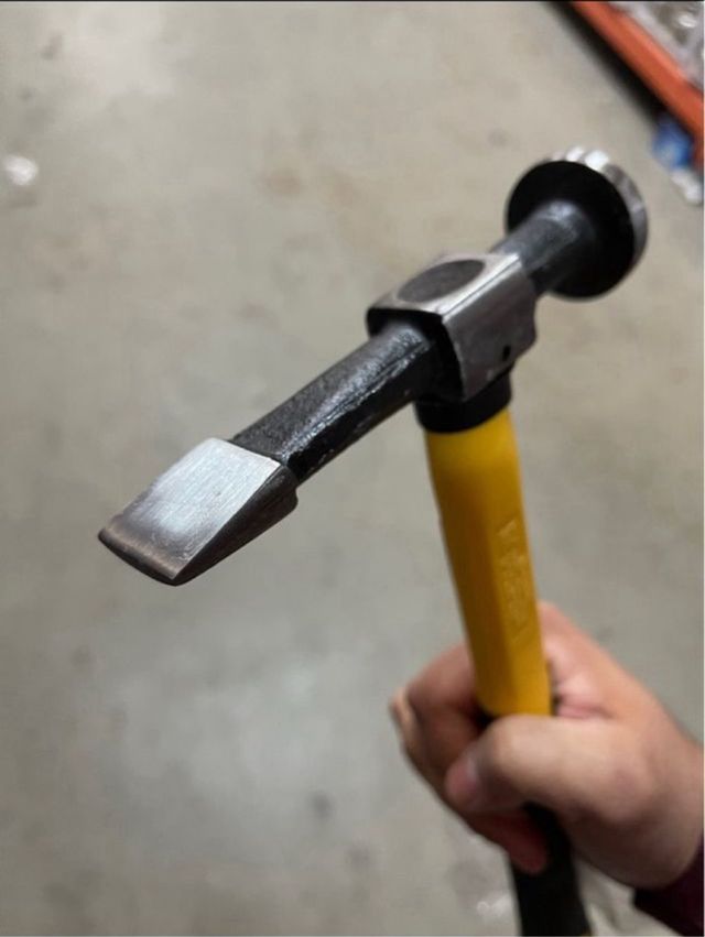 Martillo chapista nuevo a estrenar, disponible - Mango antideslizante. - Cabeza de metal con forma de cincel y otra redonda