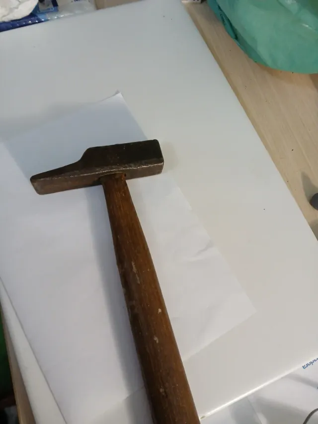 Detalles del productoMartillo de ebanista con mango de madera. También llamado martillo Warrington, con una cara plana para golpear y otra fina para precision, es una herramienta antigua