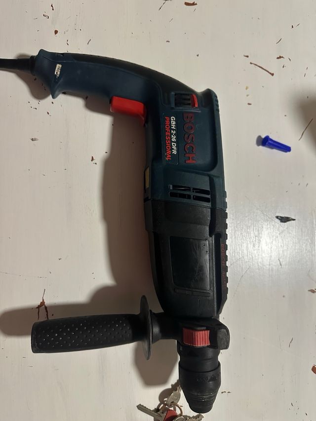 Martillo percutor Bosch profesional con cable. - Modelo: GBH 2-26 DFR. - Mango auxiliar. - Portabrocas. - Incluye llaves.