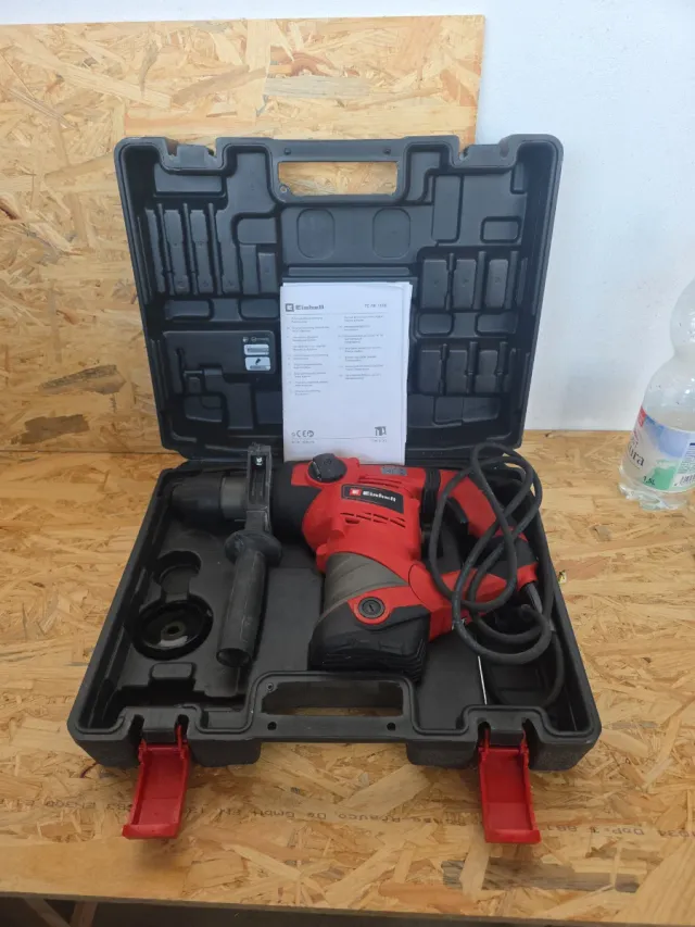 Detalles del productoMartillo percutor de la marca Einhell, ideal para trabajos de bricolaje y construcción. Se entrega en su maletín original para un fácil transporte y almacenamiento.