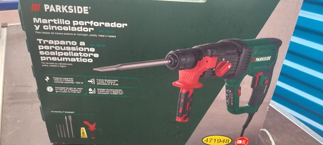 Detalles del productoMartillo perforador y cincelador Parkside, prácticamente nuevo. Ideal para trabajos en hormigón, piedra, metal y madera.