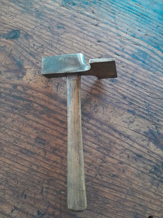 Detalles del productoMartillo de enchapado de la marca Peugeot Freres con mango de madera.