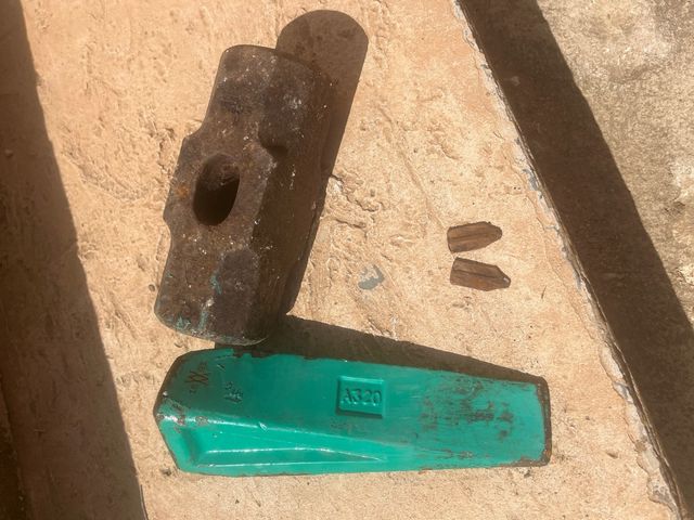 Se vende martillo (2kg aprox) sin mango y una cuña. - Martillo de metal. - Cuña de metal verde.