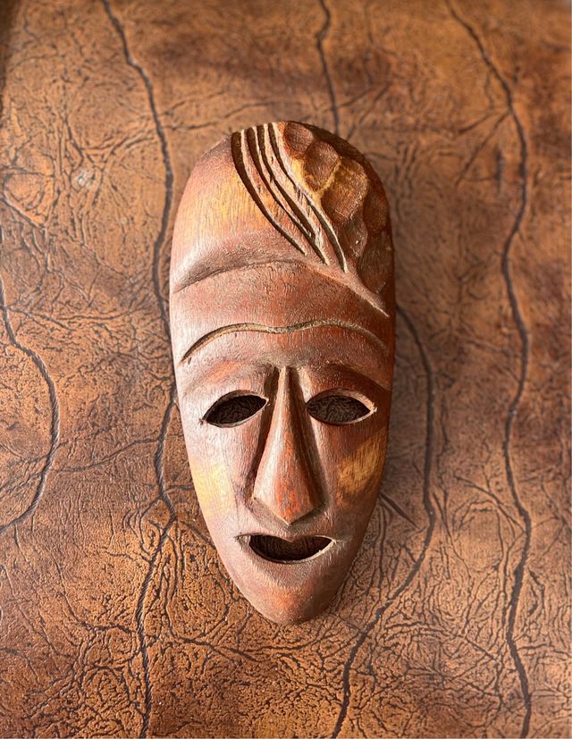 Detalles del productoMáscara decorativa de estilo africano, elaborada en madera.