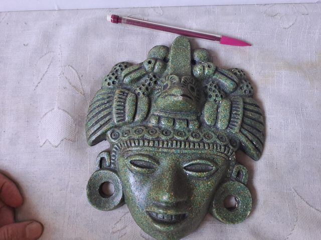 Detalles del productoPreciosa máscara azteca elaborada en malaquita. Ideal para coleccionistas o amantes del arte precolombino.