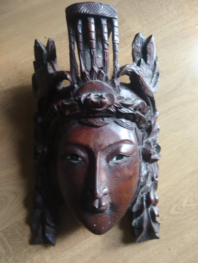 Máscara decorativa de Tailandia, tallada en madera de caoba. - Diseño detallado. - Material: Caoba.