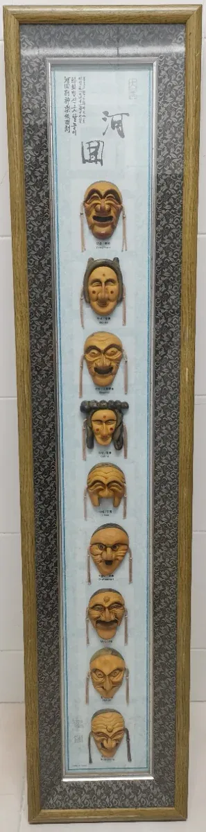 Detalles del productoCuadro de conjunto de máscaras tradicionales coreanas Hahoe.