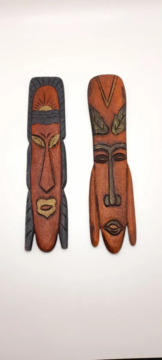 Detalles del productoConjunto de dos máscaras tribales africanas de madera, ideales para decoración.