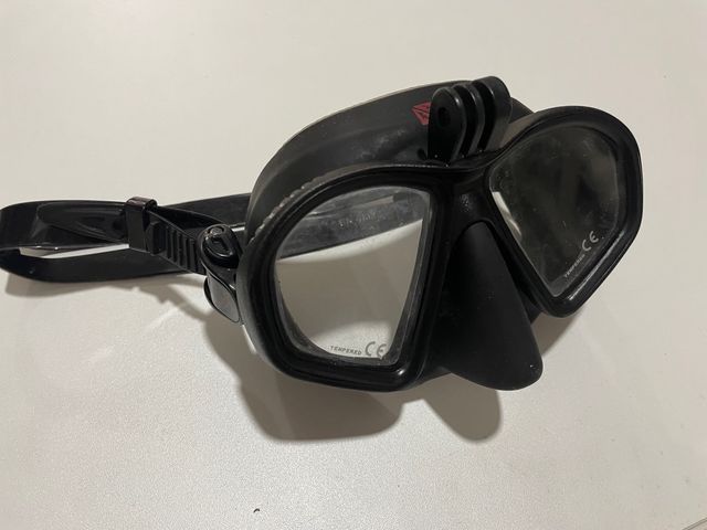 Detalles del productoMáscara de buceo de Silicona negra y de perfil bajo (perfecta tanto para buceo como para apnea y pesca submarina) con fijación para gopro u otras actioncams.