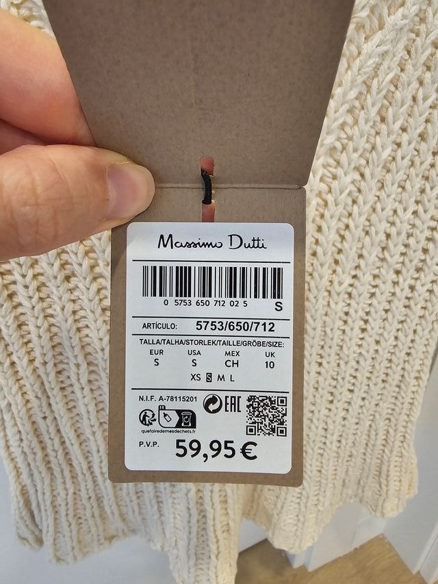 Sin estrenar · S / 36 / 8 · Massimo Dutti · Blanco y Otro