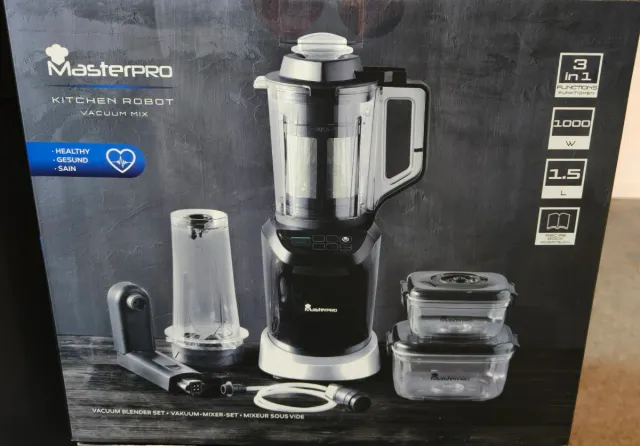 Detalles del productoRobot de cocina Masterpro Vacuum Mix en color negro. Incluye accesorios para vacío.