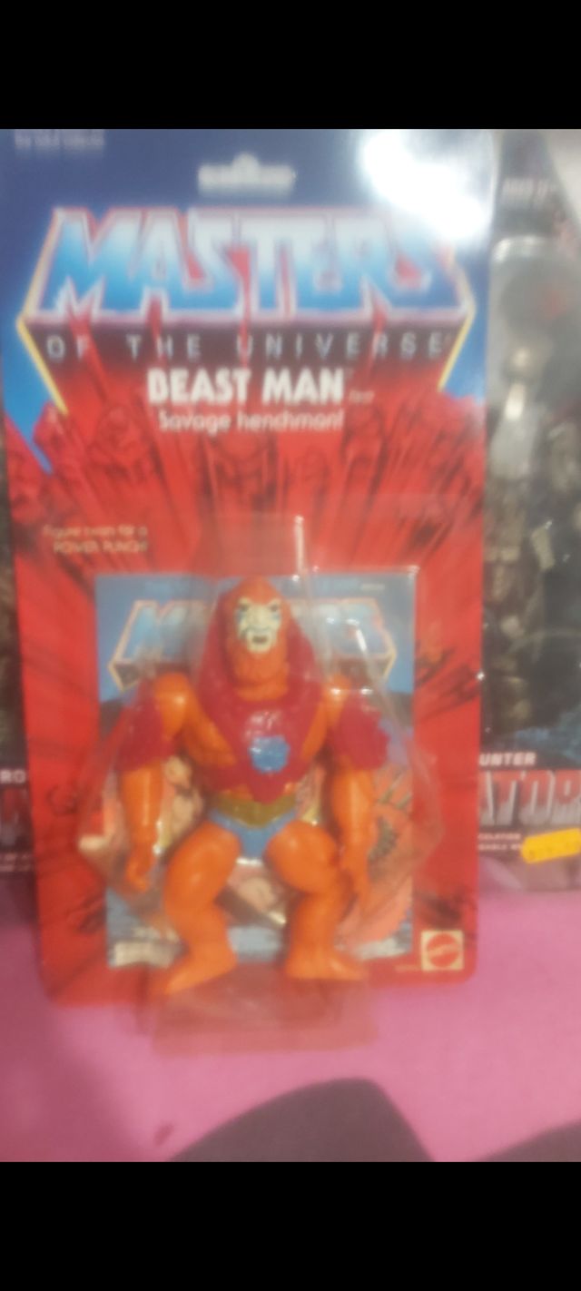 Detalles del productoMuñeco de Beast-Man / Beast Man / Beastman, de los Masters del Universo, en blister por abrir y totalmente nuevo y perfecto todo: cartón, burbuja de plástico y figura y accesorios. Una increíble máquina del tiempo para volver a los 80, para quienes conocimos estos muñecos entonces y así los veíamos en aquellos lugares mágicos q eran las jugueterías o las secciones de juguetes de las grandes superficies comerciales.