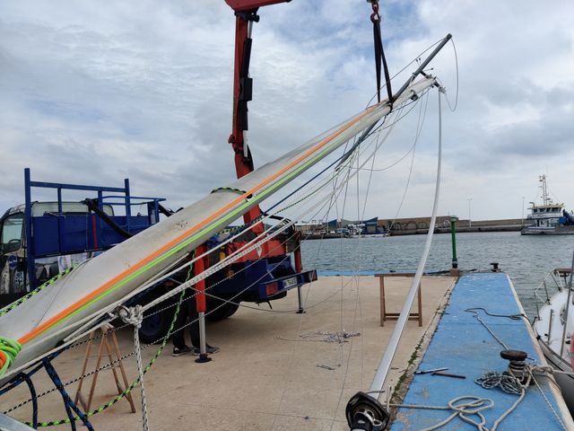 Mástil de aluminio de 9,15 metros con crucetas, base y perilla.