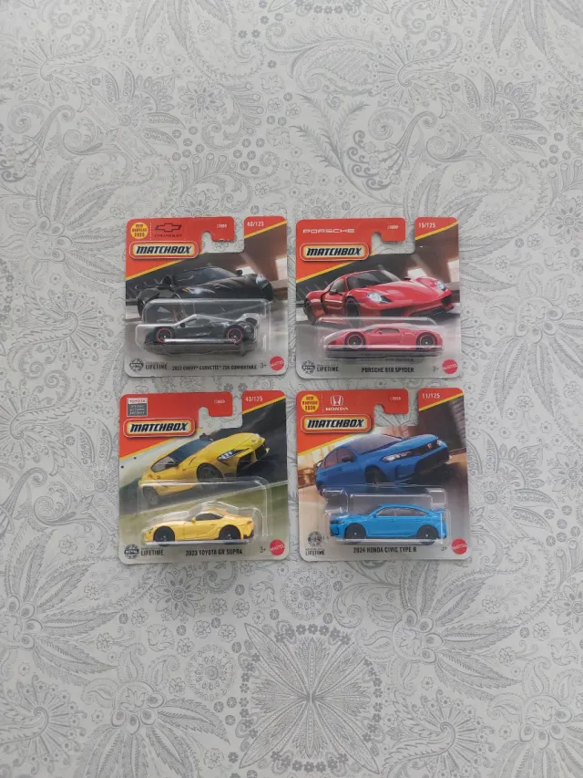 Matchbox 4 autos: Porsche, Honda, Toyota, Chevy