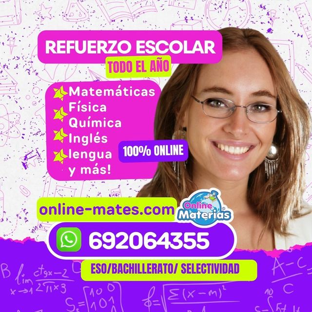 Detalles del producto¿Quieres que tu hijo supere sus retos académicos con confianza? ¡Estamos listos para ayudarle con clases todo el año! Clases online personalizadas para ESO, Bachillerato y Selectividad, adaptadas a su ritmo y con total flexibilidad.
