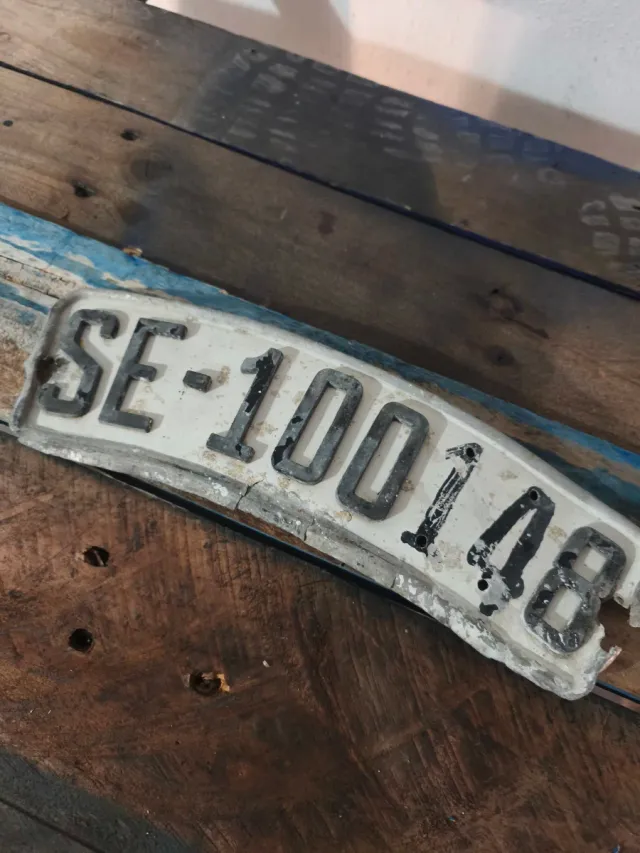 Matrícula antigua de motocicleta. De esas que se ponían en el guardabarros delantero