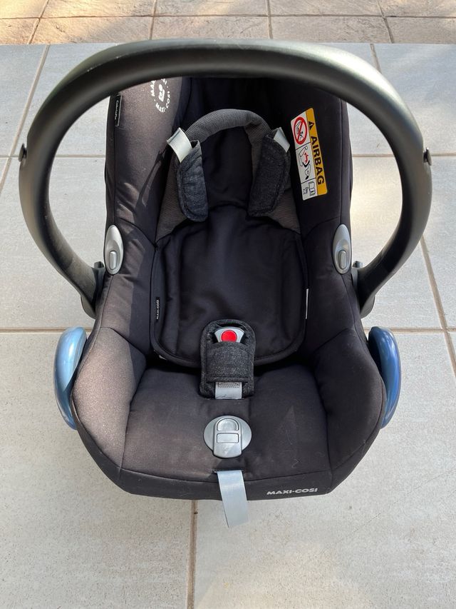 Silla porta bebe y mecedor para coche, enganche con cinturon y posible compra de accesorio para Isofix