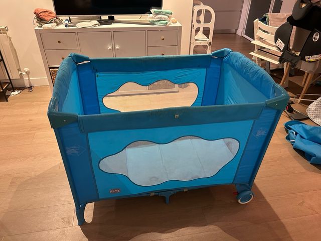 Detalles del productoPreciosa cuna de viaje de la marca PLAY x Agatha Ruiz de la Prada, en color azul. Está en buen estado, aunque muy sucia, y es perfecta para viajes, como parquecito para jugar o simplemente para tener una cuna extra en casa.