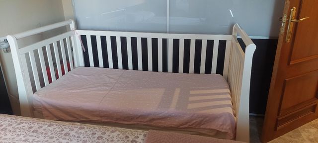 Maxicuna de color blanco, ideal para el descanso del bebé. Tamaño : 1,40 cm por 70 - Estructura de madera. - Barreras de seguridad.
