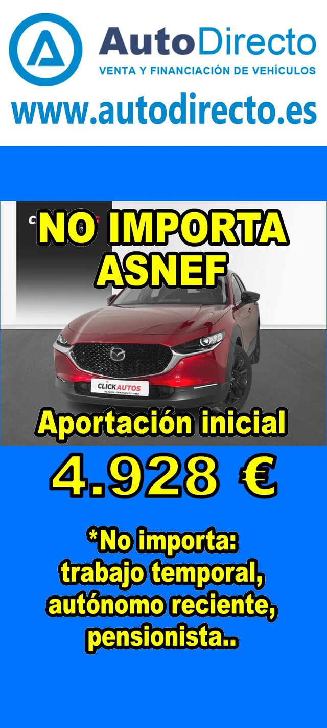 Sin valoracionesDetalles del producto¿No consigues financiación? ¡Tenemos la solución! RENT CREDIT (Alquiler con opción a compra) *************************************************************************** ✅ Aprobamos más del 95% de las operaciones. ✅ No importa ASNEF o RAI, impagos pendientes, ser autónomo o empresa reciente, ser pensionista. \\n ✅ Imprescindible aportación inicial del 20%. ✅ Ejemplo de operación: MAZDA CX-30 2.0 E-SKYACTIV 150CV MHEV HOMURA. Ref. W959049MFS - Precio vehículo: 24640 €. - Aportación inicial de 4928 €. - Cuota mes desde 512 €. ✅ Impuesto de circulación y garantía de 1 año incluidos. *************************************************************************** ✅ Más de 3.000 VEHÍCULOS EN STOCK. ✅ Kilómetros certificados. ✅ 17 concesionarios repartidos en toda España. ♻️ Aceptamos tu coche como parte de la operación. *************************************************************************** IMPORTANTE: -. Este anuncio, no es vinculante, puede contener errores. SE MUESTRAN A TÍTULO INFORMATIVO Y NO CONTRACTUAL. -. Consultar disponibilidad del vehículo y datos exactos: fecha de matriculación, importes, etc,... *************************************************************************** Te ofrecemos distintas opciones: Venta al contado, financiación, renting, RENT CREDIT (Alquiler con opción a compra).